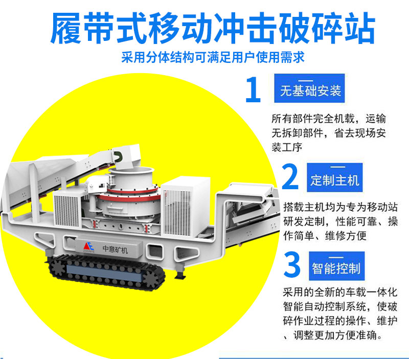 移動式沖擊破碎站主要用于冶金、化工、建材、水電等經常需要搬遷作業的物料加工,特別是用于高速公路、鐵路、水電工程等流動性石料的作業,用戶可根據加工原料的種類,規模和成品物料要求的不同采用多種配置形式。其排料粒度大小可調,破碎規格多樣化。