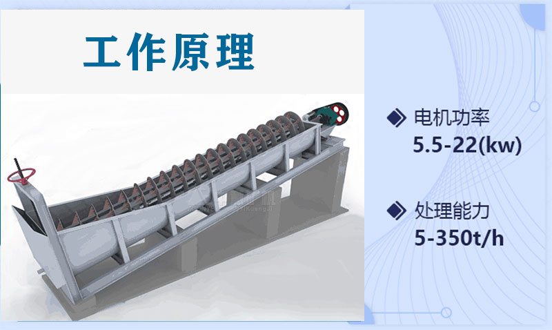 螺旋洗砂機能處理0-30mm以內的物料,可把物料上的泥土、灰粉,分洗成清潔的物料,具有結構簡單,維修容易,洗選效率高等特點。