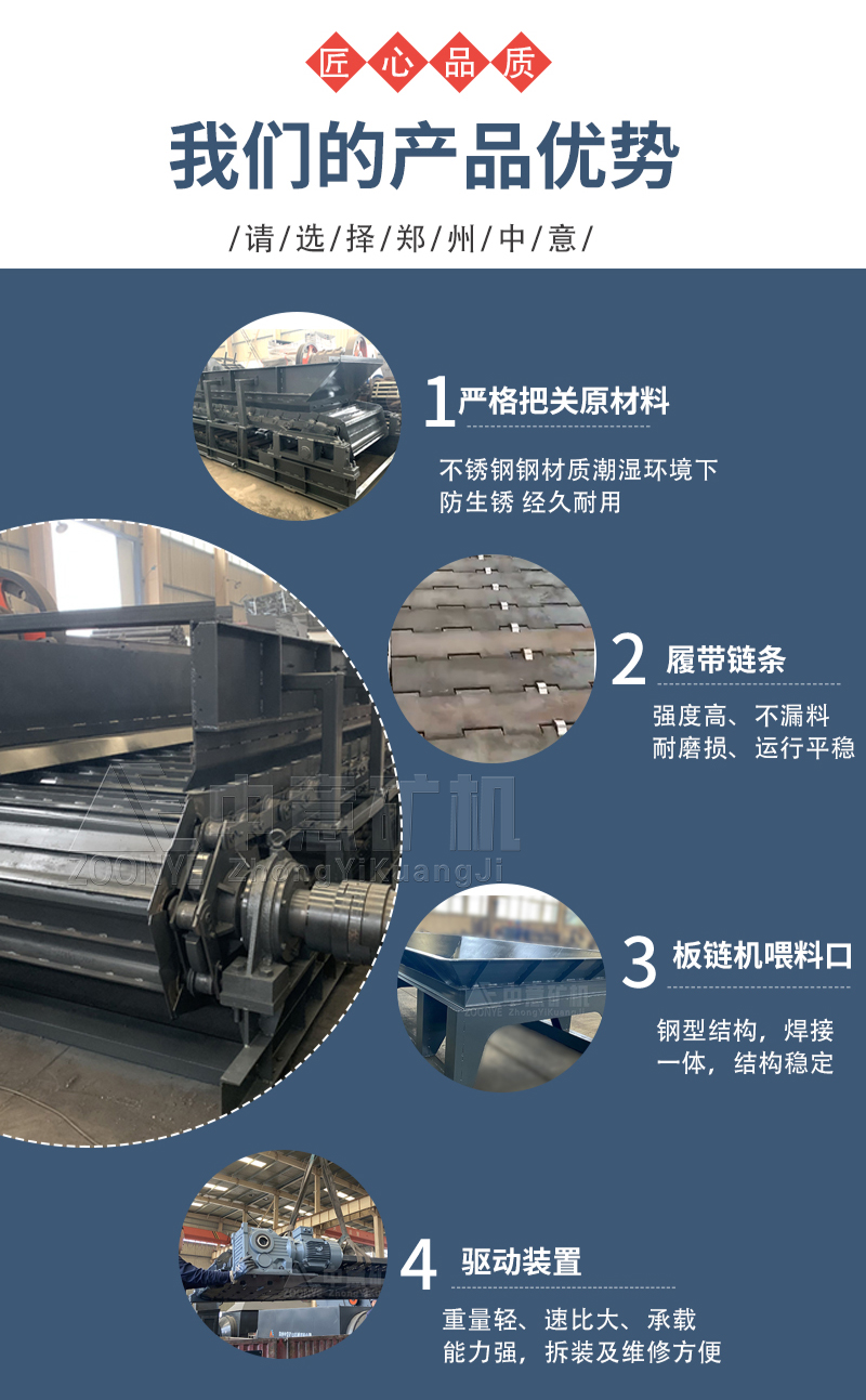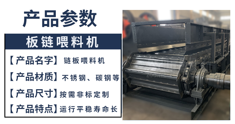 鏈板喂料機是積累了多年制造經(jīng)驗研發(fā)的一種喂料設(shè)備。由驅(qū)動鏈輪裝置、張緊鏈輪裝置、運載機構(gòu)、機架、防護(hù)罩、送料輥輪、回程輥輪等組成。喂料機尾部裝置采取特殊設(shè)計,特別適用于粘性大的物料,不會聚積尾部而造成鏈條出現(xiàn)跳齒現(xiàn)象,而且給料量大小可調(diào)。具有結(jié)構(gòu)簡單,造價低,維修方便,可承受大塊物料的沖擊,節(jié)約原料,使用壽命長,噪音小等優(yōu)點。適合大型及中型礦山、磚廠、建材、化工等行業(yè)。鏈板喂料機、鏈板喂料機、鏈板喂料機廠家規(guī)格,長度可根據(jù)客戶的現(xiàn)場尺寸定作。