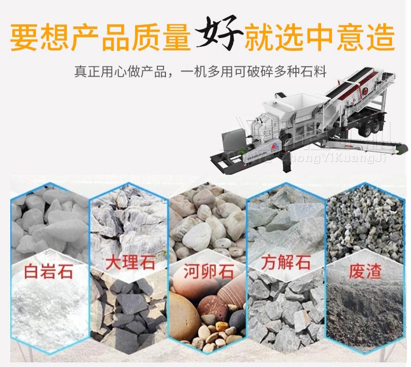 鄭州中意的移動(dòng)式石子破碎機(jī)質(zhì)量好、規(guī)格全、價(jià)格優(yōu),廠家會(huì)根據(jù)您的實(shí)際生產(chǎn)情況,為您搭配合適的生產(chǎn)線,且支持定做。若您想選購(gòu)一臺(tái)這樣的設(shè)備,不妨考慮和鄭州中意廠家合作,您可以來廠參觀考察、免費(fèi)試機(jī)!